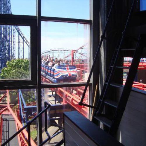 Blackpool Pleasure Beach, Sandcastle - Waterworld, South Pier, Central Pier, & Blackpool Tower.